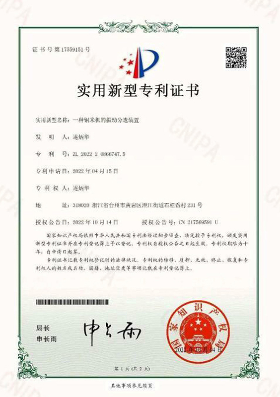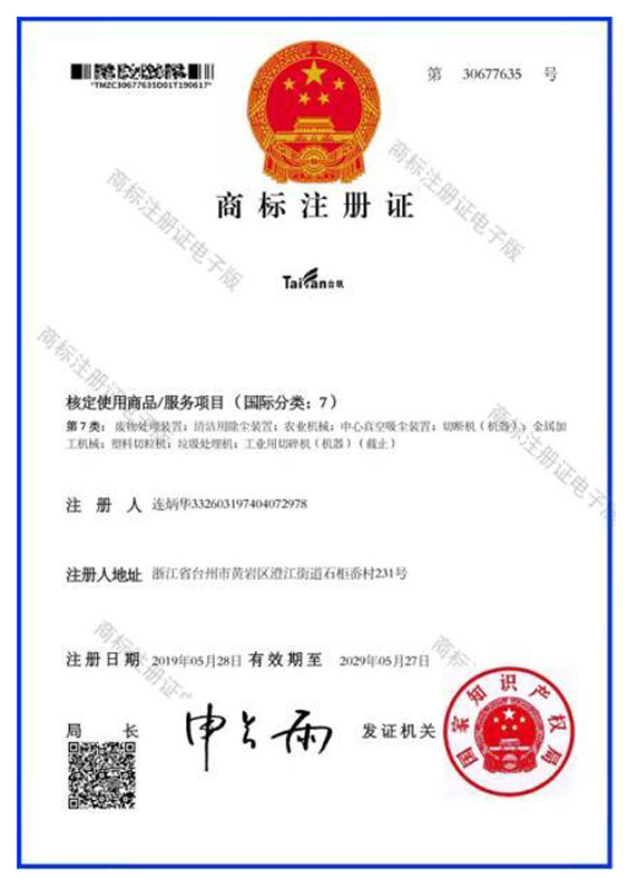 Taizhou Taifan Machinery Equipment Co., Ltd. is a company engaged in the manufacture of environmental protection equipment approved by the relevant state departments. It specializes in the research, development, production, sales and after-sales service of copper rice machines. The company's main copper rice machine, automatic dry copper rice machine, dry powder copper rice machine, miscellaneous copper rice machine, wet copper rice machine. The newly developed dry copper rice machine copper and plastic separation rate is the leader in the domestic industry. Since its establishment, the company has consistently adopted new technologies and trained a group of highly qualified and highly skilled employees. The products have won the favor of domestic and foreign customers with their honest reputation, excellent quality and innovative style.